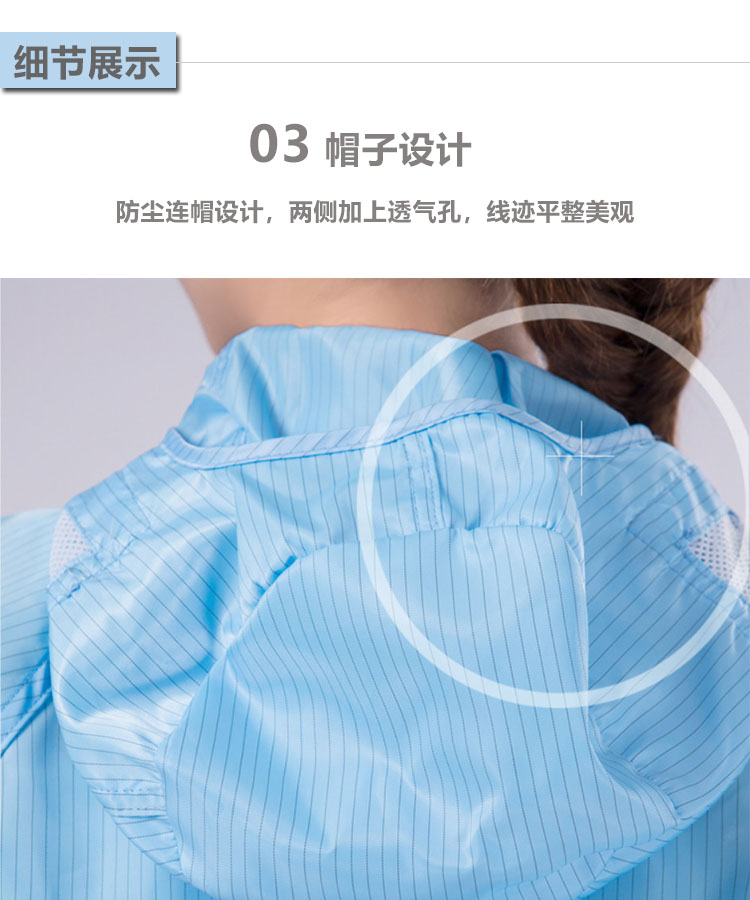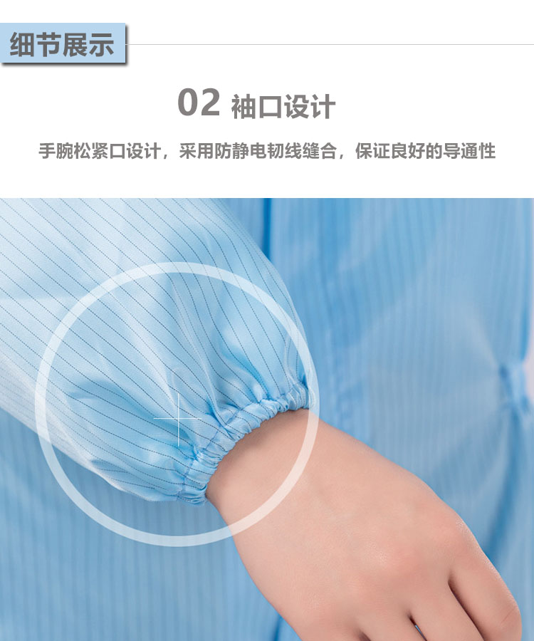 防靜電無塵連體服是由專業(yè)的防靜電面料制作,采用滌綸長絲與高性能導電纖維編織而成,具有高效、永久的防靜電、防塵性能,能有效釋放人體靜電荷,從而滿足高級別無塵環(huán)境的要求。廣泛應用于電子電器、食品、生物制藥、實驗室等無塵車間及產線。