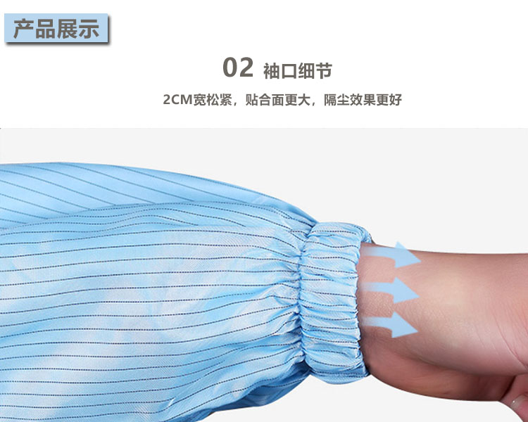 防靜電無(wú)塵連體服采用的導(dǎo)電綢面料除了具有良好的防靜電功能外,其面料同時(shí)還具有本身不發(fā)塵、不沾塵、阻隔性好,高密度等功能,一般應(yīng)用于實(shí)驗(yàn)室、無(wú)塵凈化車間里。根據(jù)潔凈室的要求,可以選擇0.5CM條紋、0.5CM網(wǎng)格、0.25CM網(wǎng)格等導(dǎo)電綢面料的無(wú)塵服。