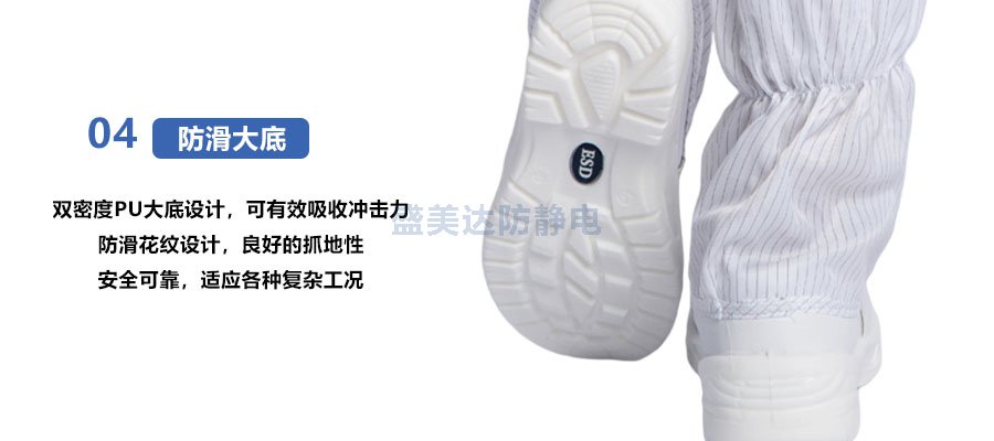 3、防靜電大底:專業(yè)防滑大底設(shè)計(jì),符合防靜電要求標(biāo)準(zhǔn)電阻值;