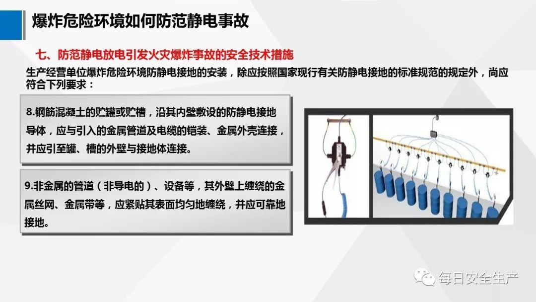 9.3.1 對爆炸火災危險場所內(nèi)可能產(chǎn)生靜電危險的設備和管道,均應采取接地措施。